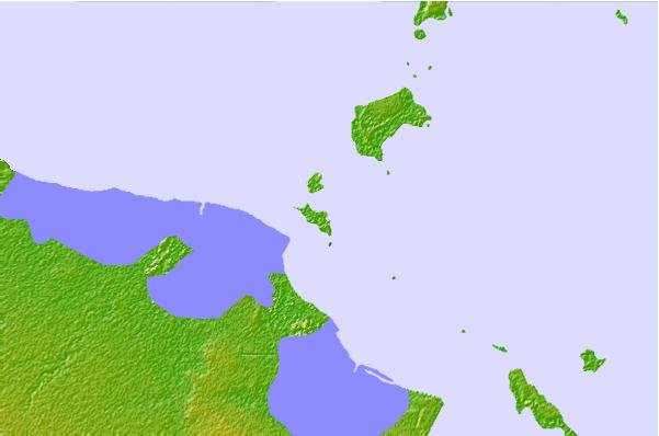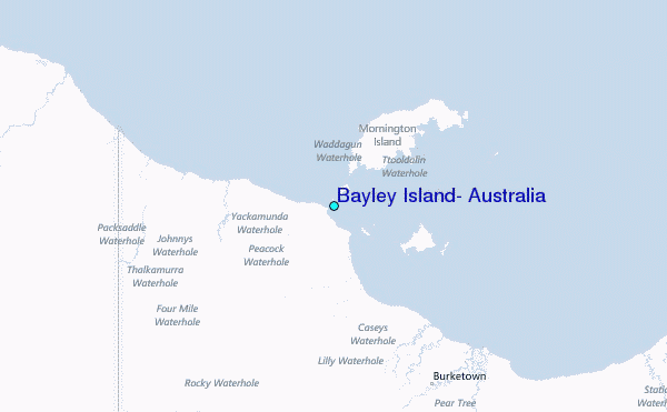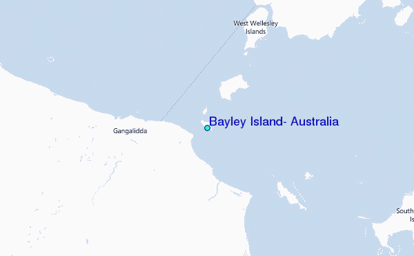 Use this relief map to navigate to tide stations, surf breaks and cities that are in the area of Bayley Island, Australia.