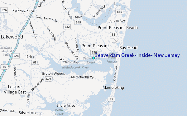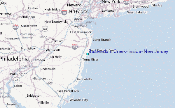 Use this relief map to navigate to tide stations, surf breaks and cities that are in the area of Beaverdam Creek, inside, New Jersey.