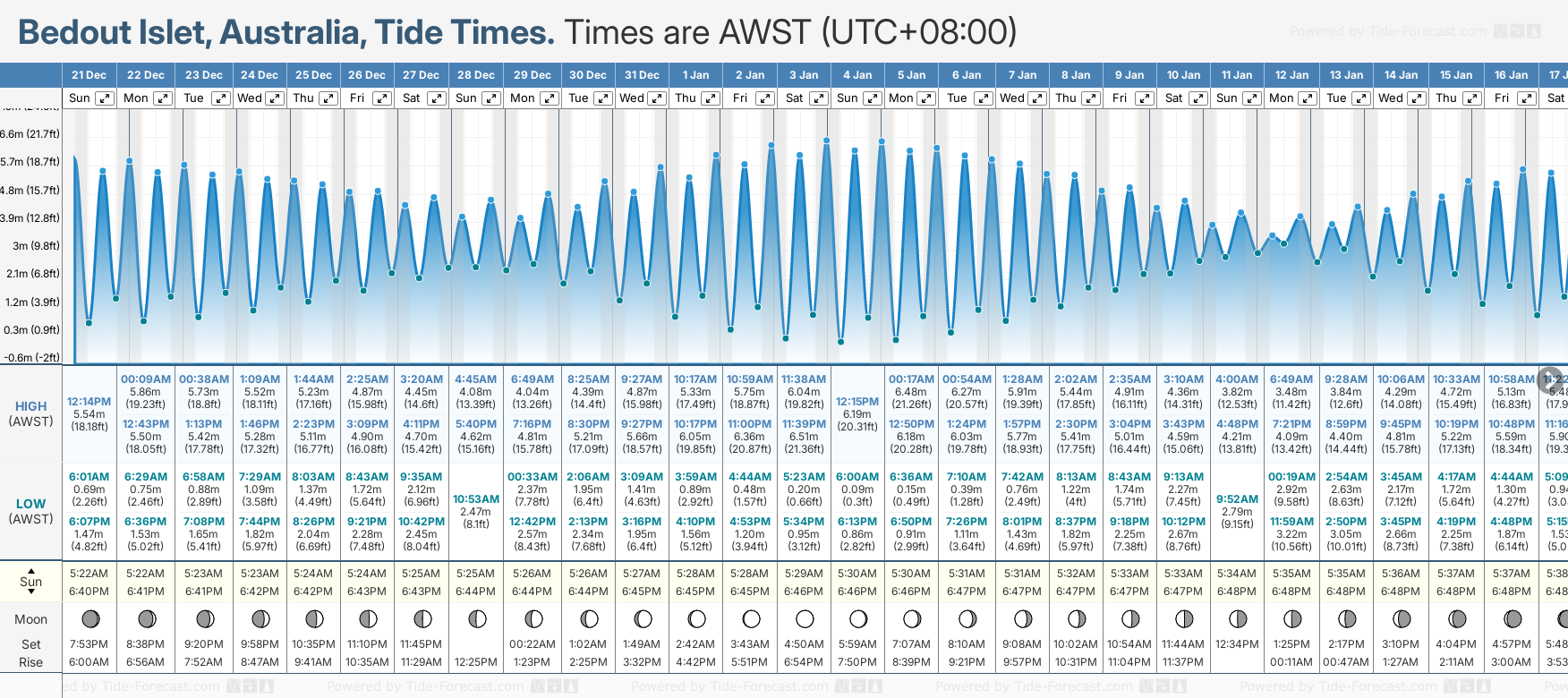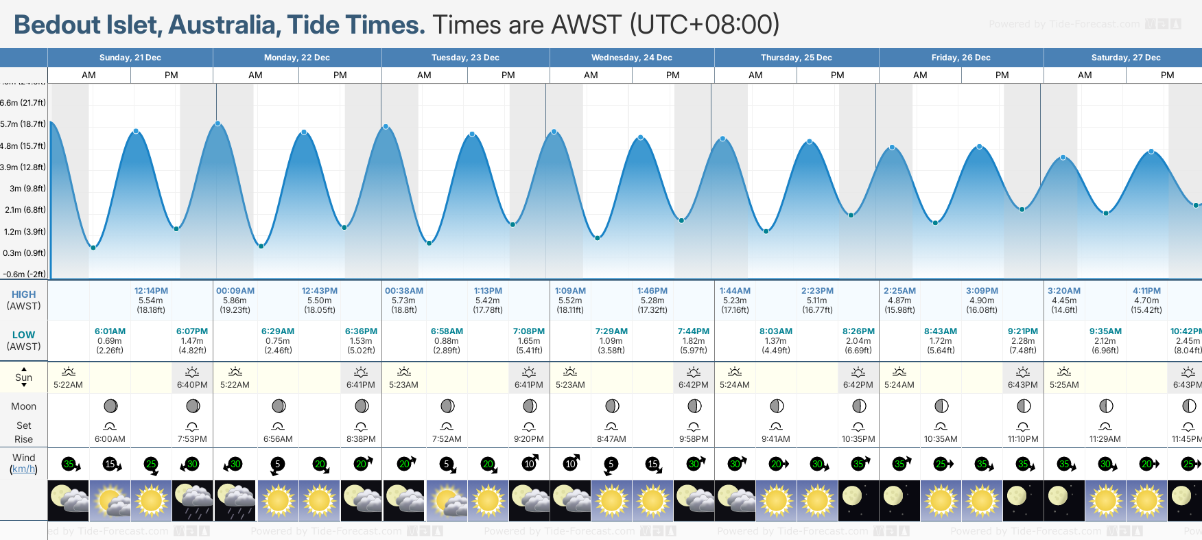 Today's tide times for Bedout Islet: Monday 22 December 2025