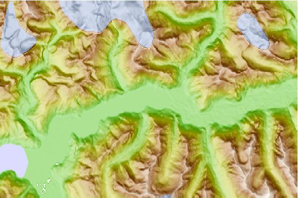 Use this relief map to navigate to tide stations, surf breaks and cities that are in the area of Bella Coola, British Columbia.