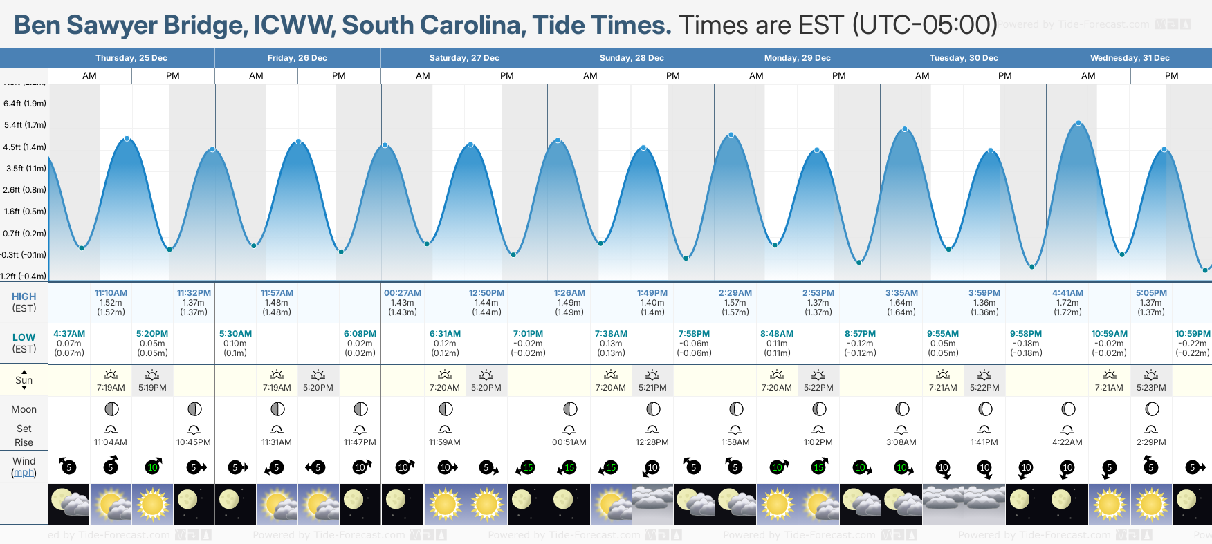Today's tide times for Ben Sawyer Bridge, ICWW: Thursday 25 December 2025