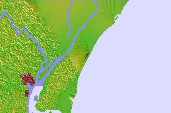 Use this relief map to navigate to tide stations, surf breaks and cities that are in the area of Bennet's Dock, Pawleys Island Creek, South Carolina.