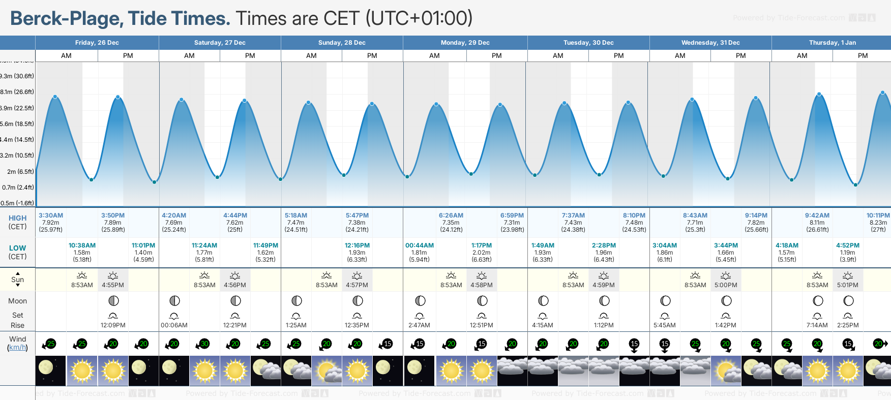 Tide Times for Berck-Plage (tomorrow): Friday 26 December 2025