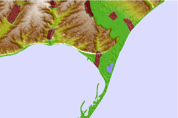 Use this relief map to navigate to tide stations, surf breaks and cities that are in the area of Berdyansk.