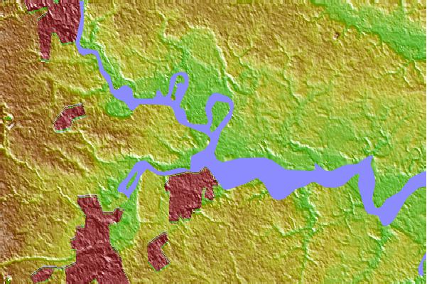 Use this relief map to navigate to tide stations, surf breaks and cities that are in the area of Bermuda Hundred, James River, Virginia.