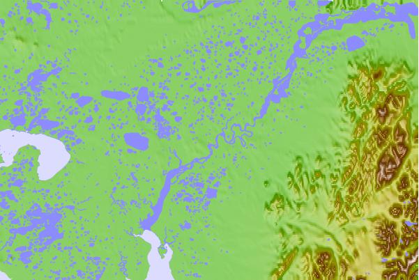 Use this relief map to navigate to tide stations, surf breaks and cities that are in the area of Bethel, Alaska.