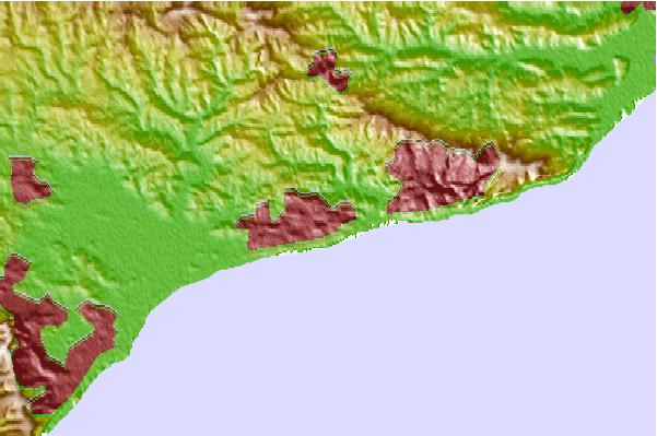 Use this relief map to navigate to tide stations, surf breaks and cities that are in the area of Bexhill.