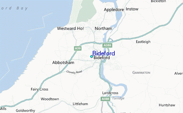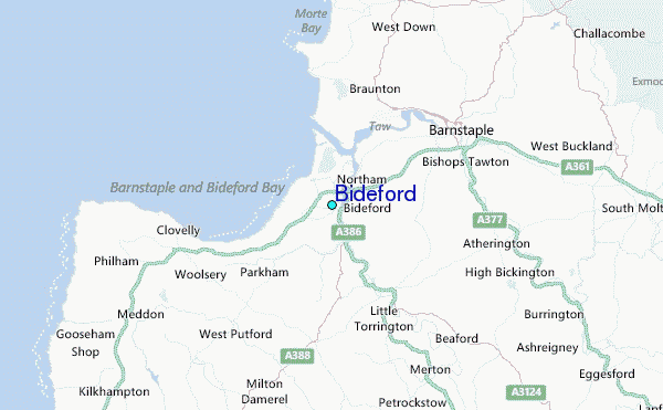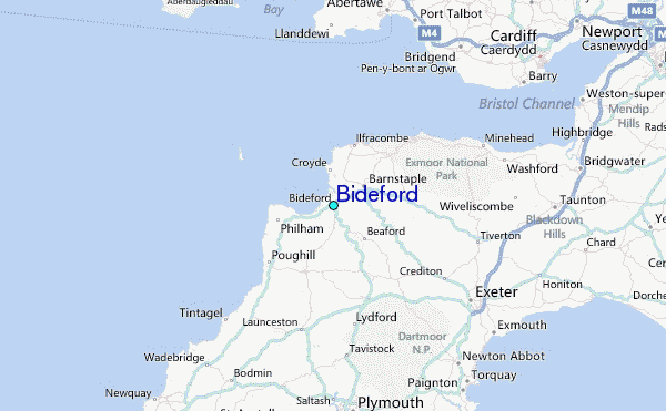 Use this relief map to navigate to tide stations, surf breaks and cities that are in the area of Bideford.
