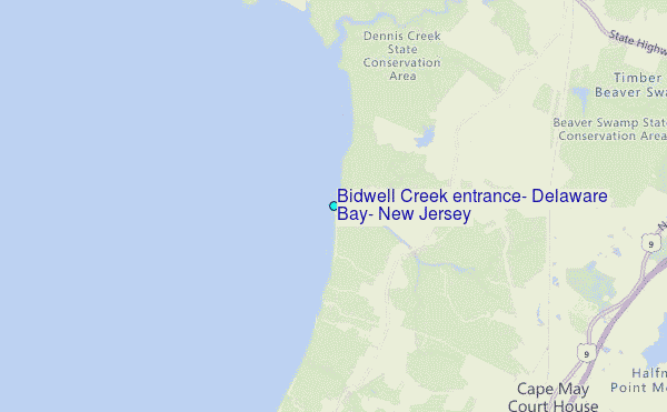 Choose Bidwell Creek entrance, Delaware Bay, New Jersey Location Map Zoom: