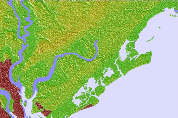 Use this relief map to navigate to tide stations, surf breaks and cities that are in the area of Big Paradise Island, Wando River, South Carolina.