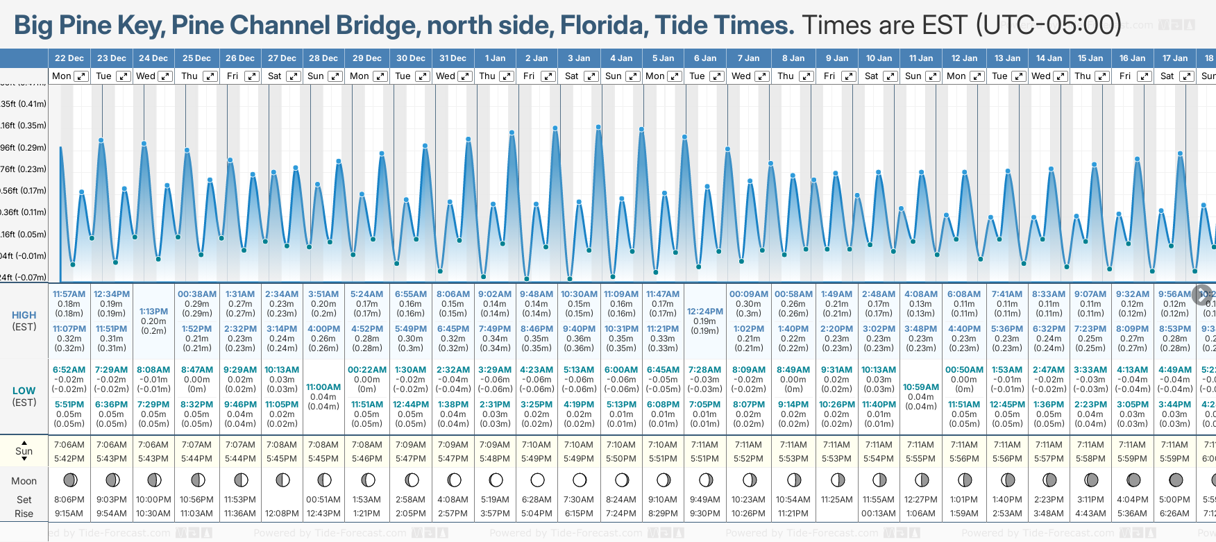 Today's tide times for Big Pine Key, Pine Channel Bridge, north side: Monday 22 December 2025