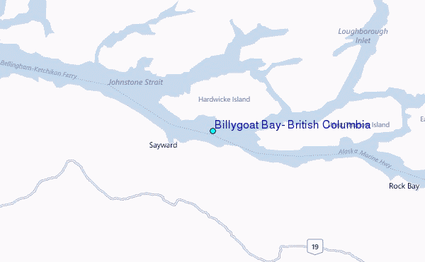 Use this relief map to navigate to tide stations, surf breaks and cities that are in the area of Billygoat Bay, British Columbia.