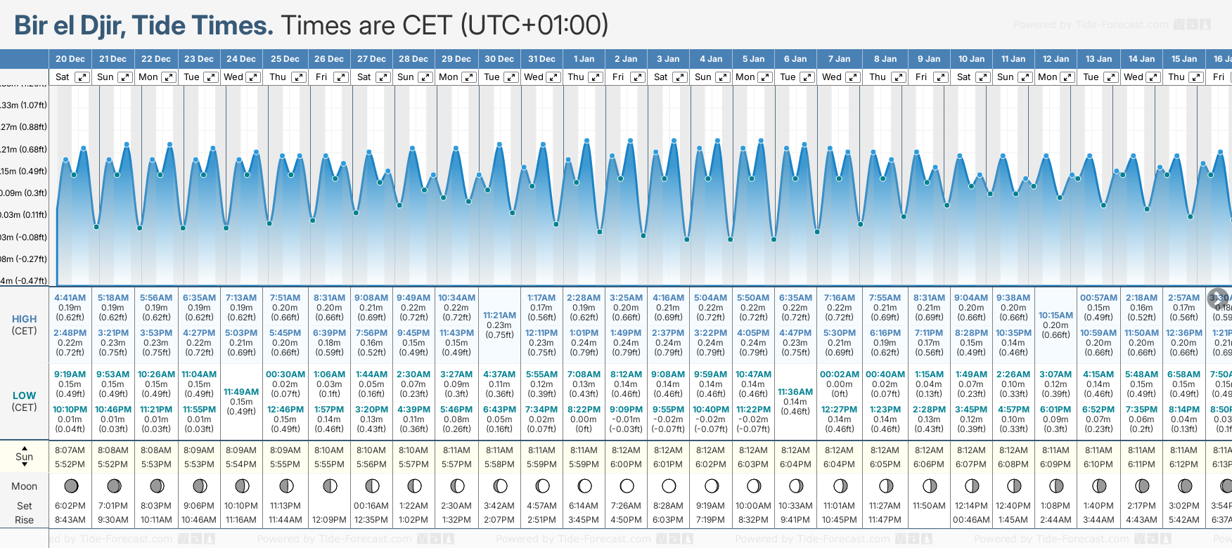 Tide Times for Bir el Djir: Thursday 01 January 2026