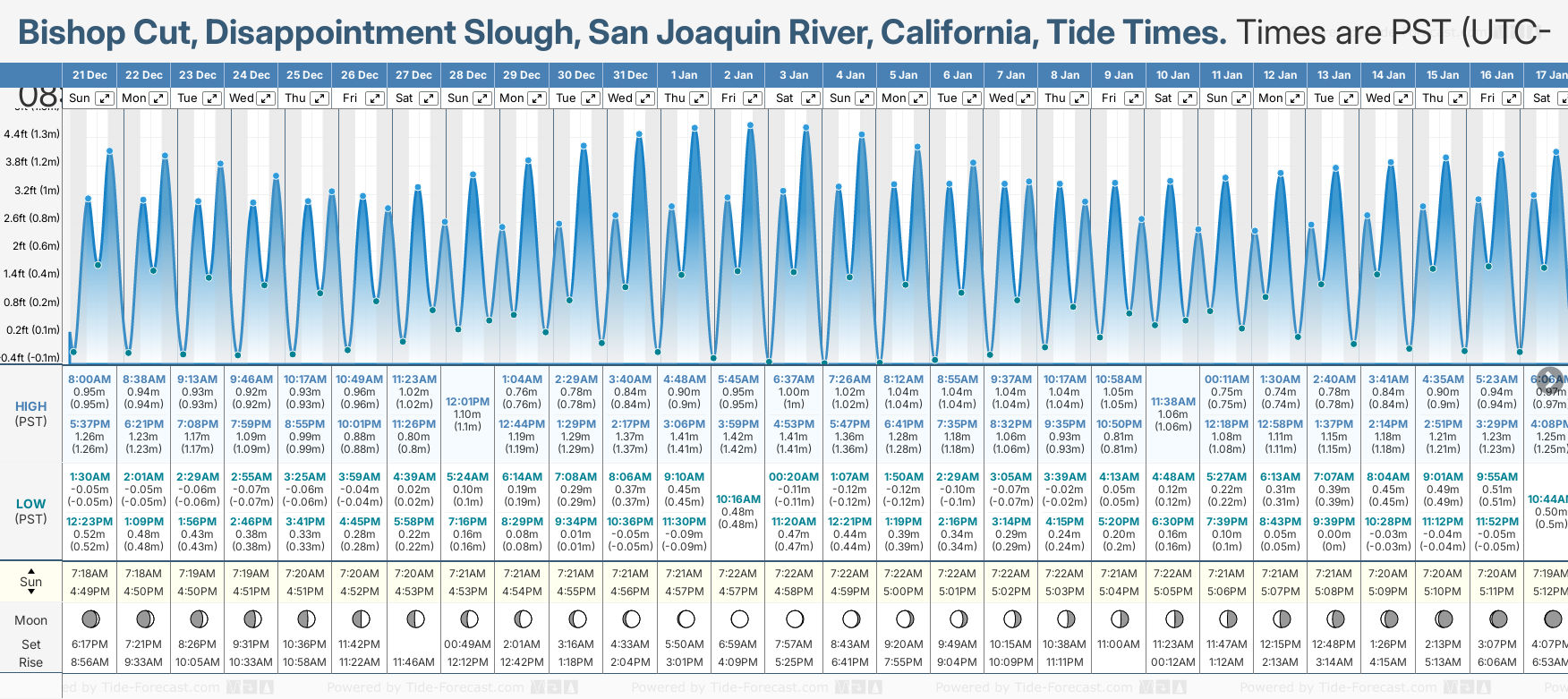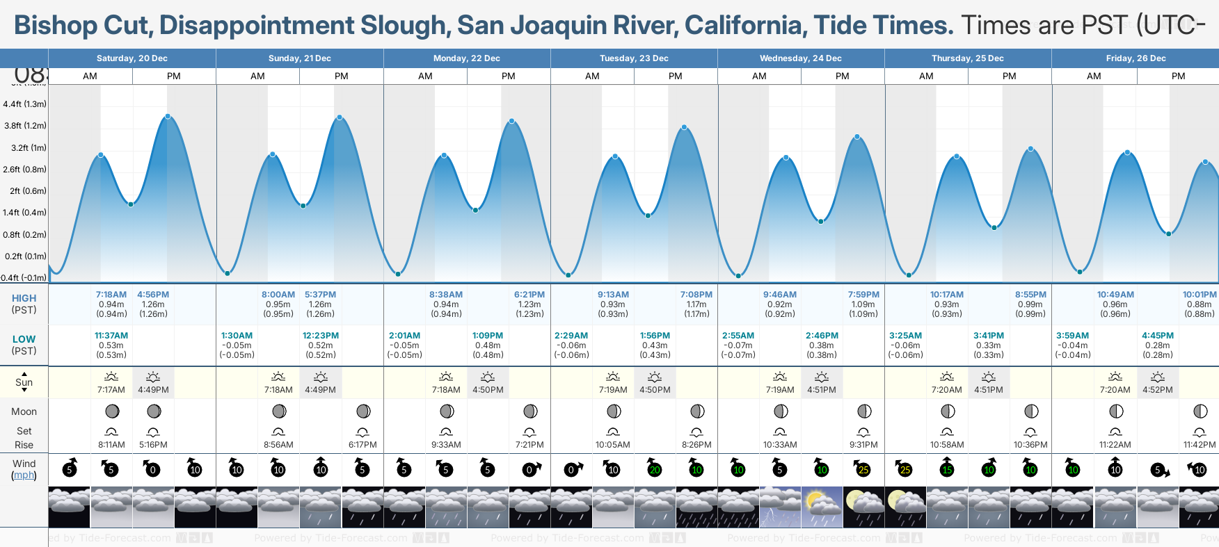Tide Times for Bishop Cut, Disappointment Slough, San Joaquin River (tomorrow): Sunday 21 December 2025