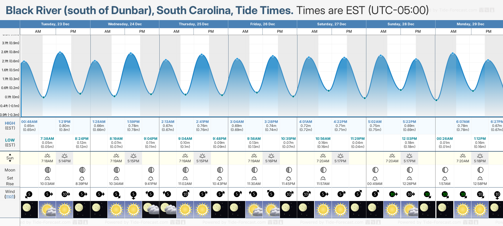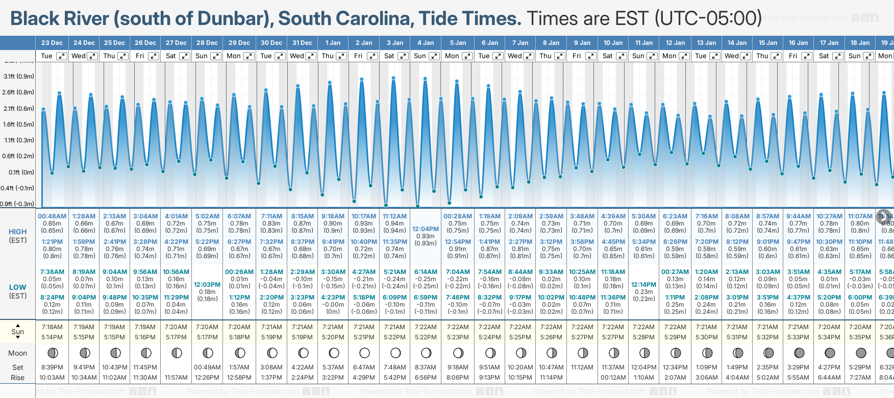 NOTE: Use of this site for Black River (south of Dunbar), South Carolina tide times is subject to our terms.