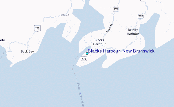 Use this relief map to navigate to tide stations, surf breaks and cities that are in the area of Blacks Harbour, New Brunswick.