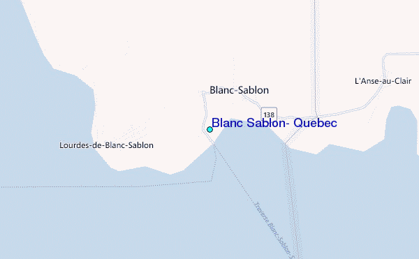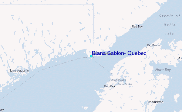 Use this relief map to navigate to tide stations, surf breaks and cities that are in the area of Blanc Sablon, Quebec.