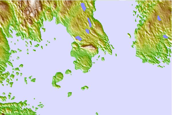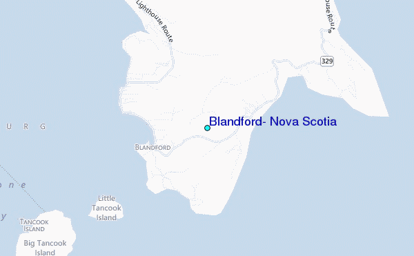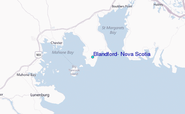 Use this relief map to navigate to tide stations, surf breaks and cities that are in the area of Blandford, Nova Scotia.