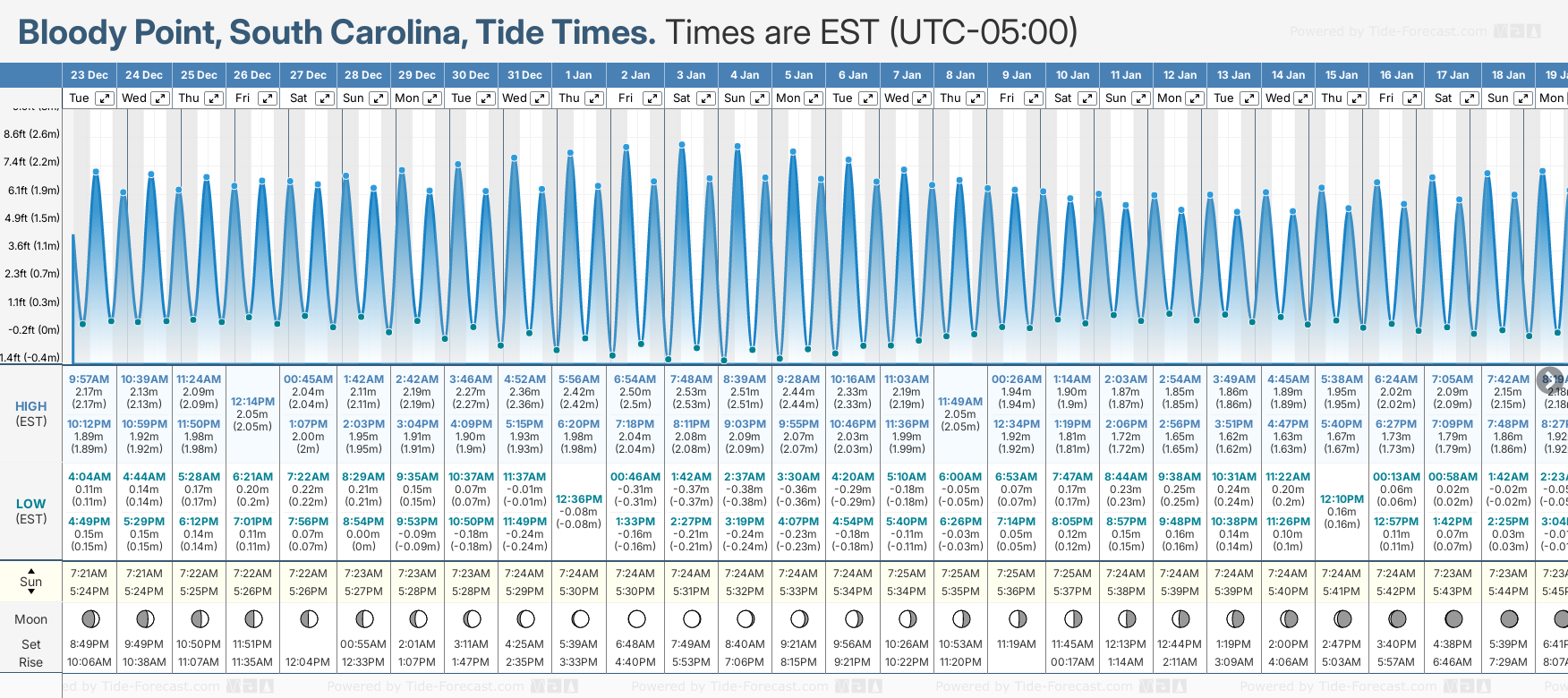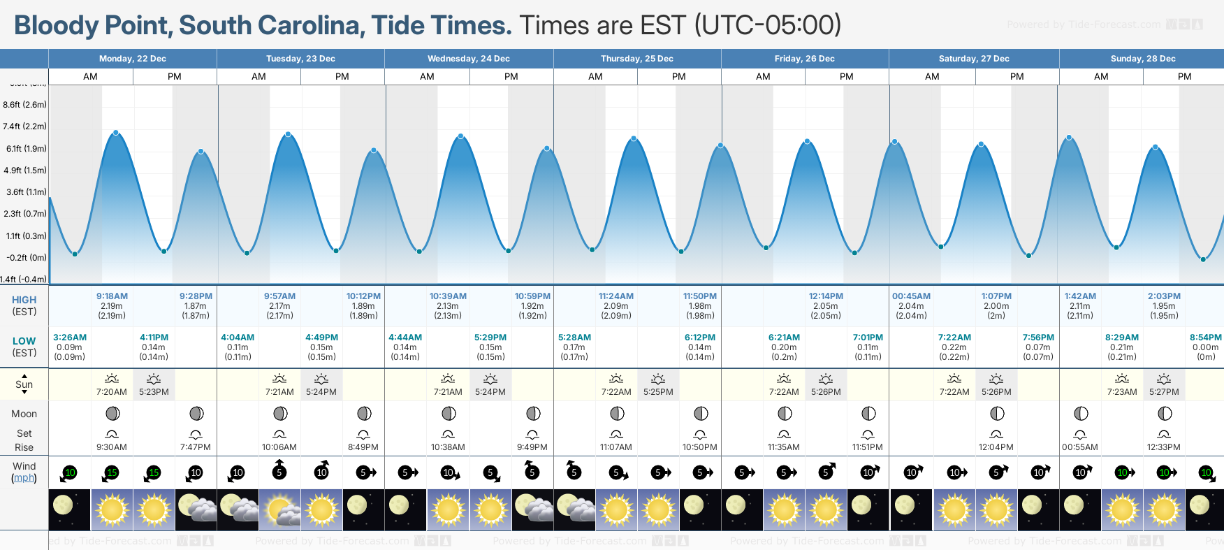 NOTE: Use of this site for Bloody Point, South Carolina tide times is subject to our terms.