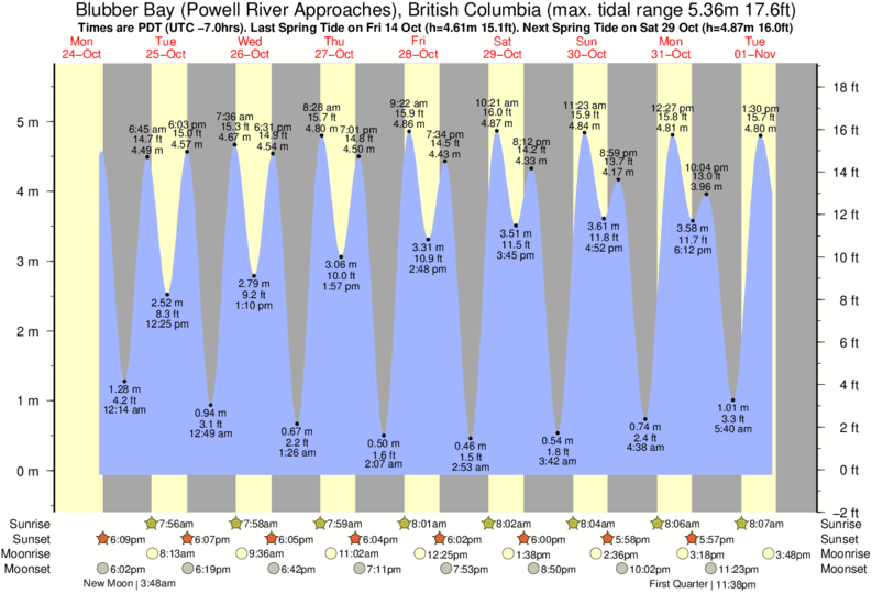 Tide chart for Blubber Bay (Powell River Approaches)Showing low and high tide times for the next 30 days at Blubber Bay (Powell River Approaches). Tide Times are PST (UTC -8.0hrs).