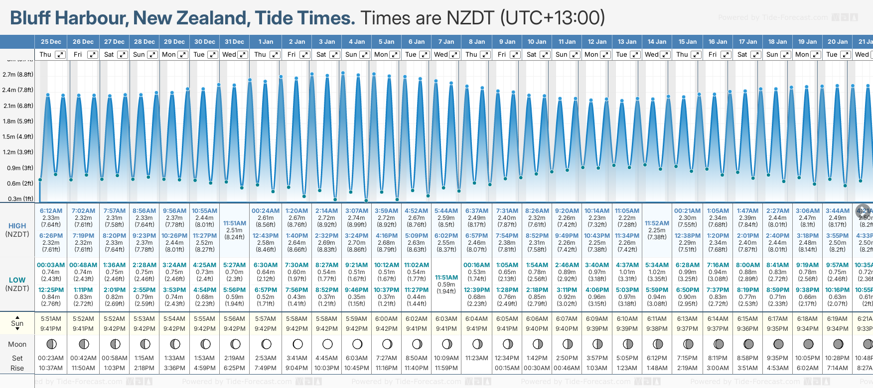 NOTE: Use of this site for Bluff Harbour, New Zealand tide times is subject to our terms.