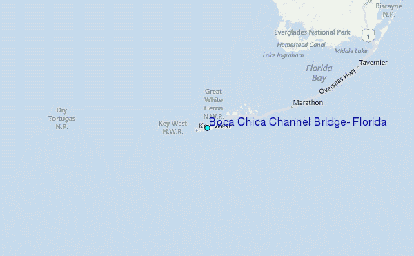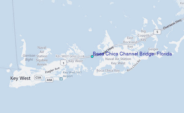Use this relief map to navigate to tide stations, surf breaks and cities that are in the area of Boca Chica Channel Bridge, Florida.