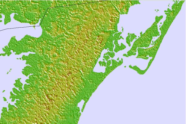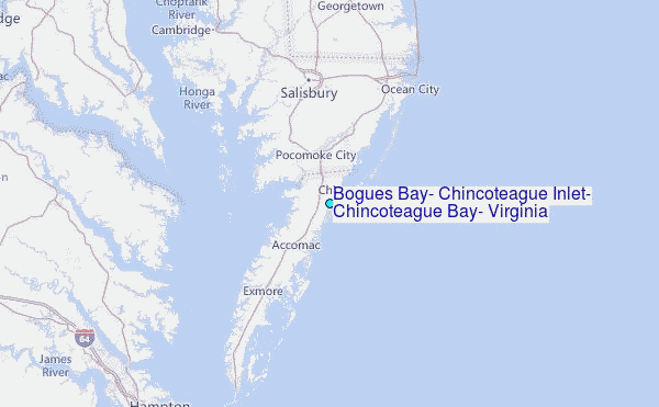 Use this relief map to navigate to tide stations, surf breaks and cities that are in the area of Bogues Bay, Chincoteague Inlet, Chincoteague Bay, Virginia.