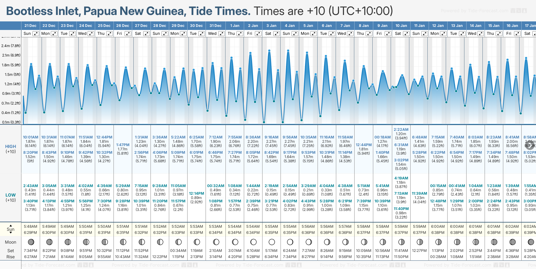NOTE: Use of this site for Bootless Inlet, Papua New Guinea tide times is subject to our terms.