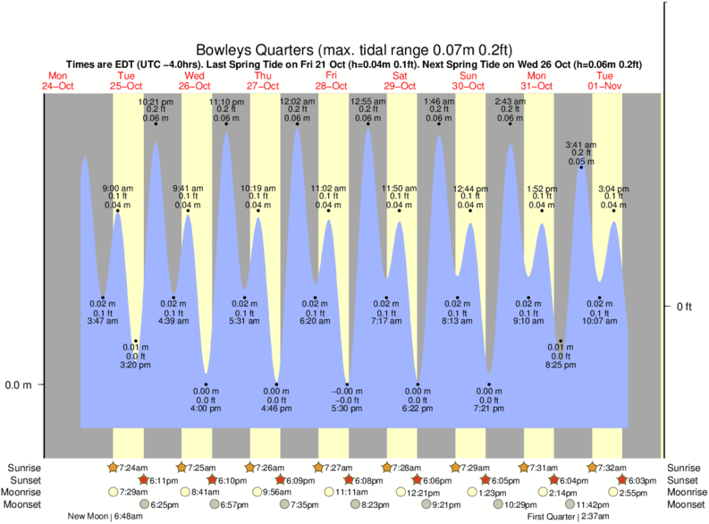 December and January Tide charts for Bowleys Quarters: The tide charts below show the height, time and date of high and low tides for the next 30 days.