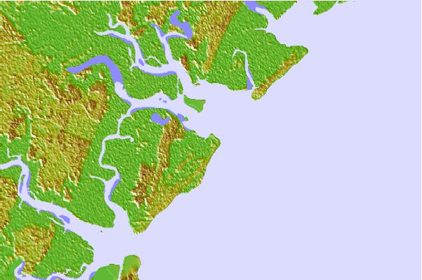 Use this relief map to navigate to tide stations, surf breaks and cities that are in the area of Bradley Point, Bradley River, Georgia.