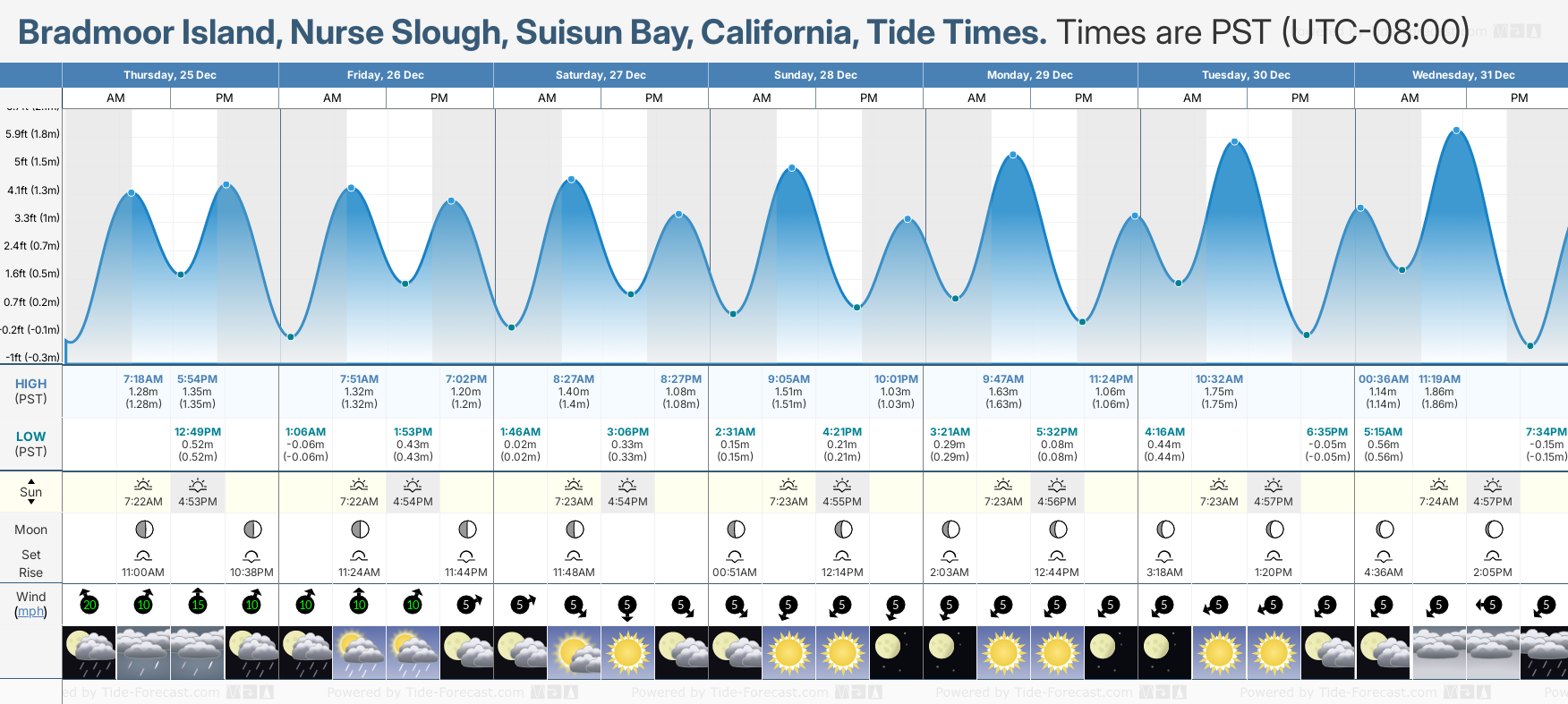 Today's tide times for Bradmoor Island, Nurse Slough, Suisun Bay: Thursday 25 December 2025