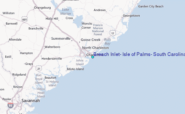 Use this relief map to navigate to tide stations, surf breaks and cities that are in the area of Breach Inlet, Isle of Palms, South Carolina.