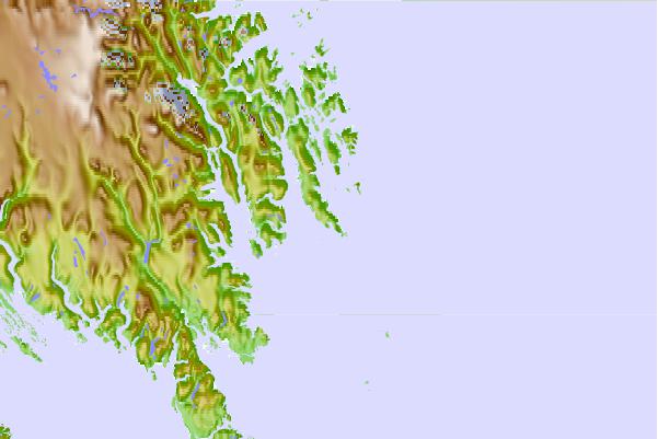 Use this relief map to navigate to tide stations, surf breaks and cities that are in the area of Brevoort Harbour, Nunavut.