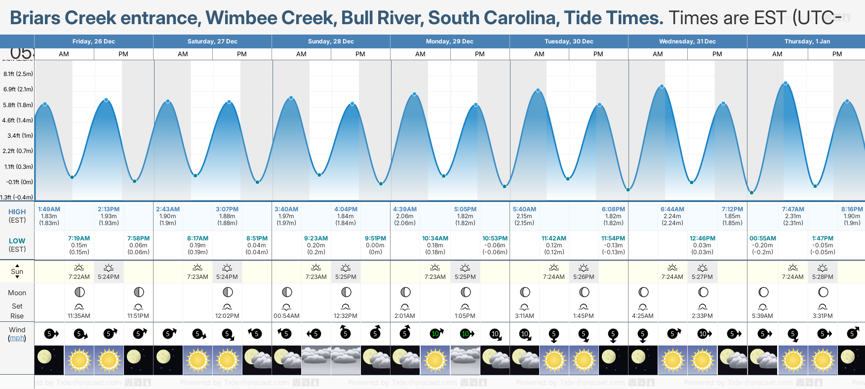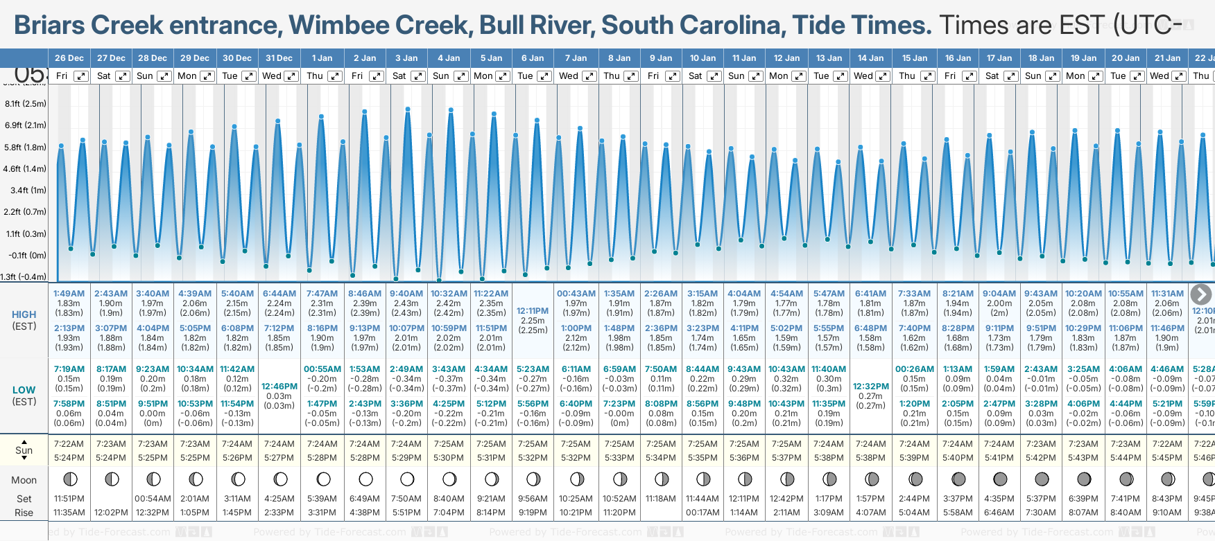 NOTE: Use of this site for Briars Creek entrance, Wimbee Creek, Bull River, South Carolina tide times is subject to our terms.