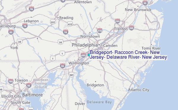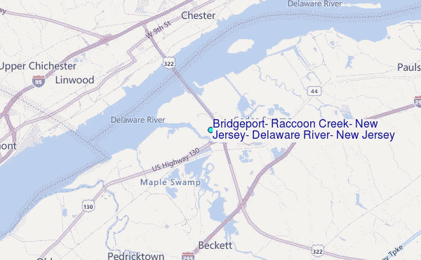 Use this relief map to navigate to tide stations, surf breaks and cities that are in the area of Bridgeport, Raccoon Creek, New Jersey, Delaware River, New Jersey.