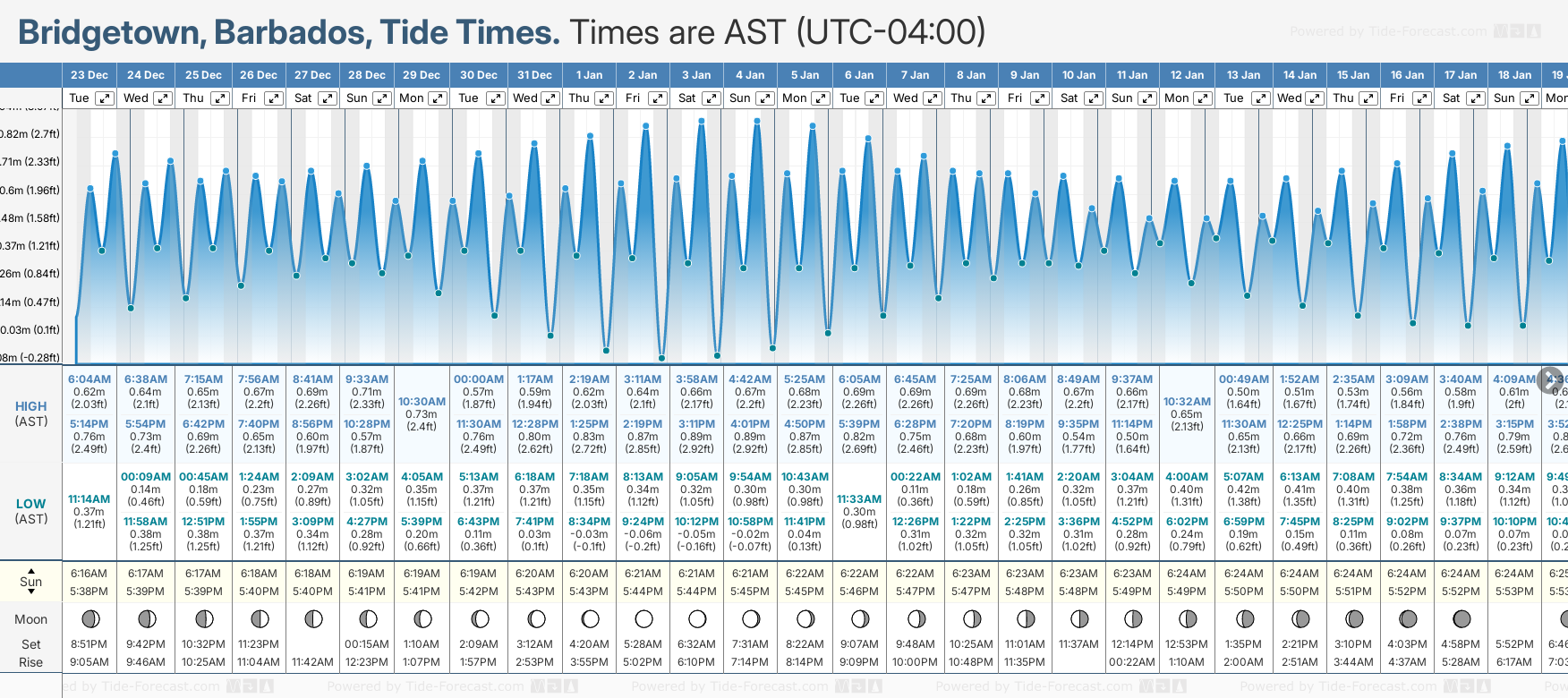 Today's tide times for Bridgetown, Barbados: Tuesday 23 December 2025