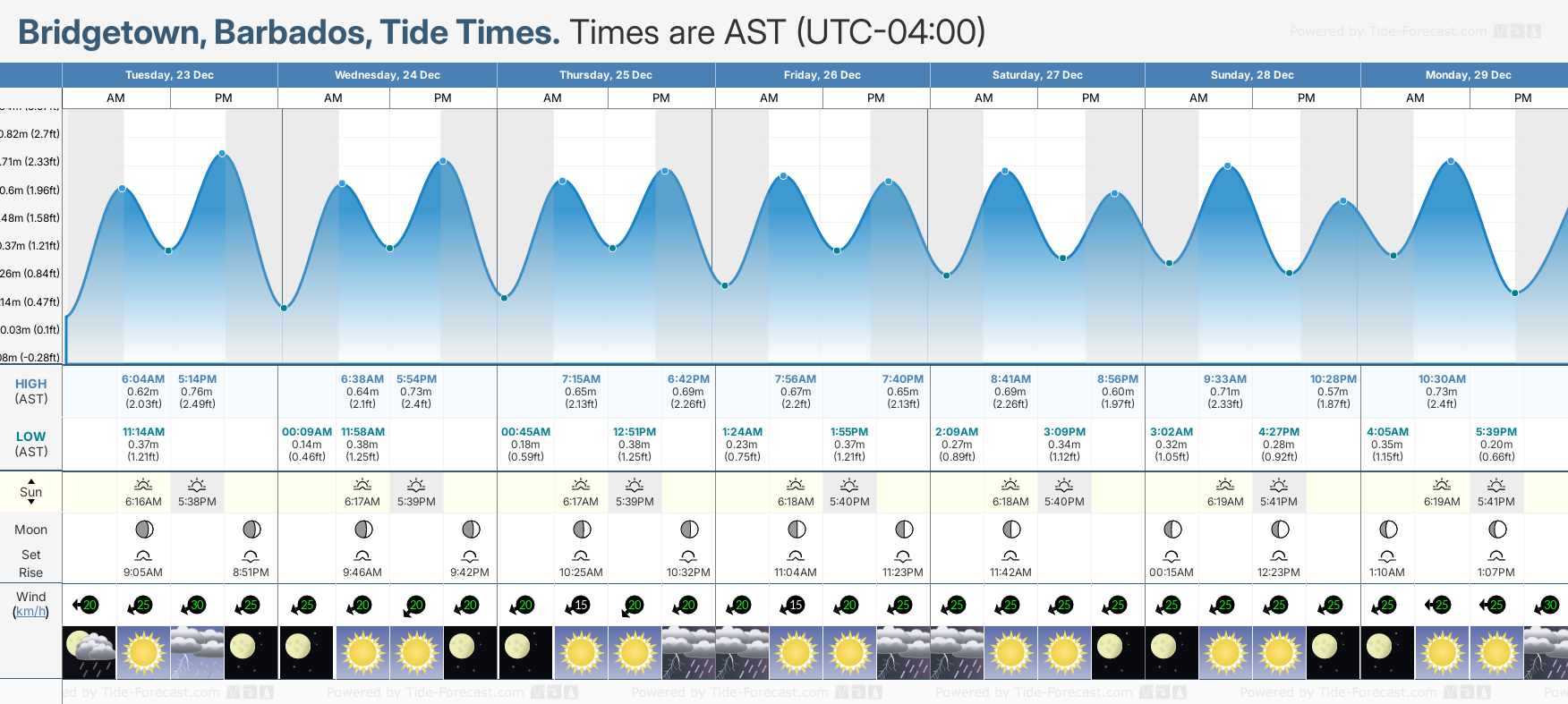 Tide Times for Bridgetown, Barbados (tomorrow): Wednesday 24 December 2025