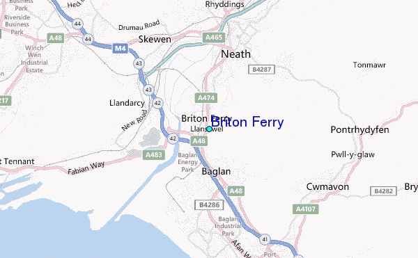Use this relief map to navigate to tide stations, surf breaks and cities that are in the area of Briton Ferry.