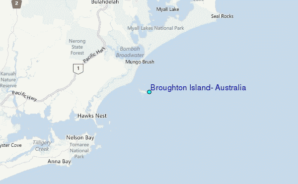 Use this relief map to navigate to tide stations, surf breaks and cities that are in the area of Broughton Island, Australia.