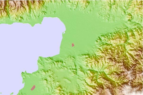 Use this relief map to navigate to tide stations, surf breaks and cities that are in the area of Burhaniye.