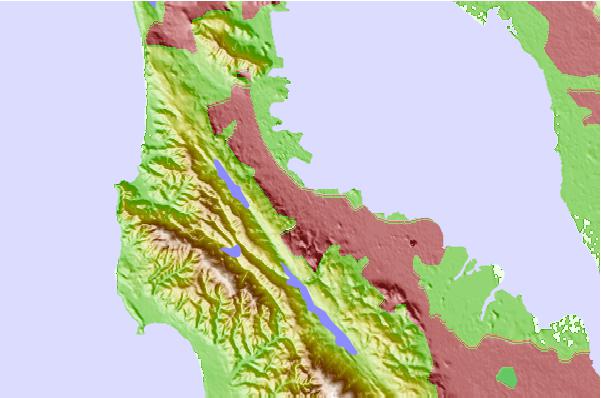 Use this relief map to navigate to tide stations, surf breaks and cities that are in the area of Burlingame.