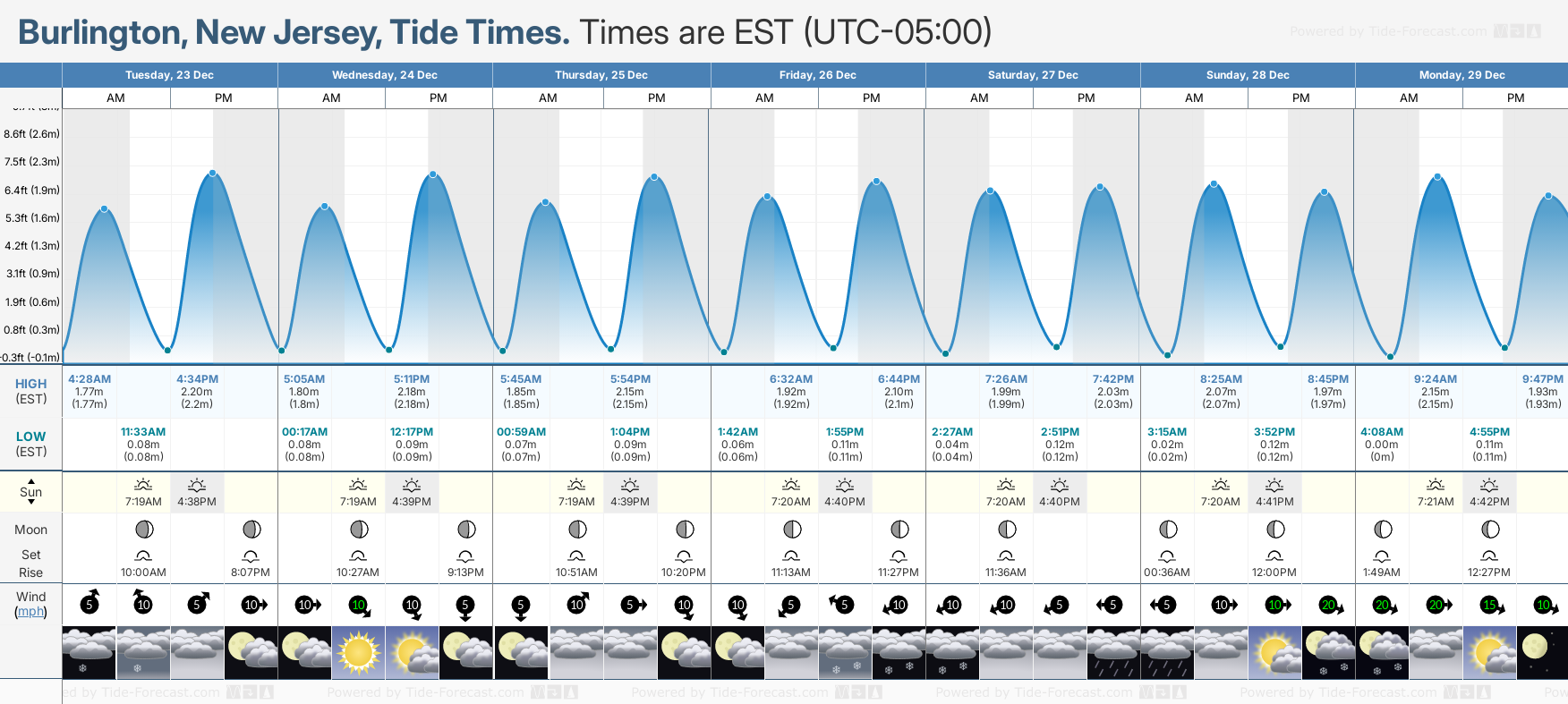 Burlington tide times for December and January