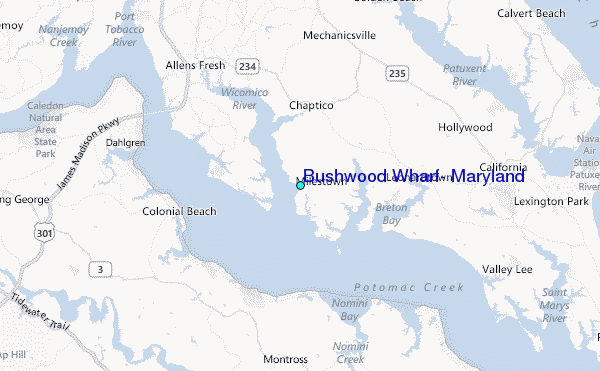 Use this relief map to navigate to tide stations, surf breaks and cities that are in the area of Bushwood Wharf, Maryland.