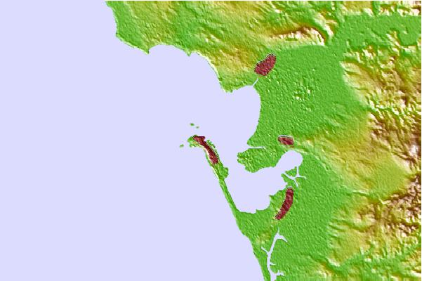 Use this relief map to navigate to tide stations, surf breaks and cities that are in the area of Cadiz, Spain.
