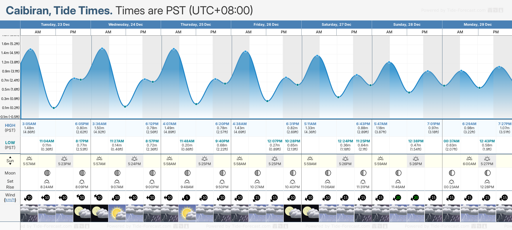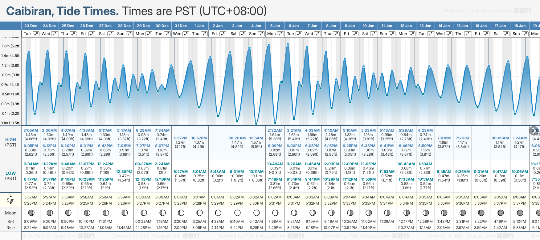 December and January Tide charts for Caibiran: The tide charts below show the height, time and date of high and low tides for the next 30 days.