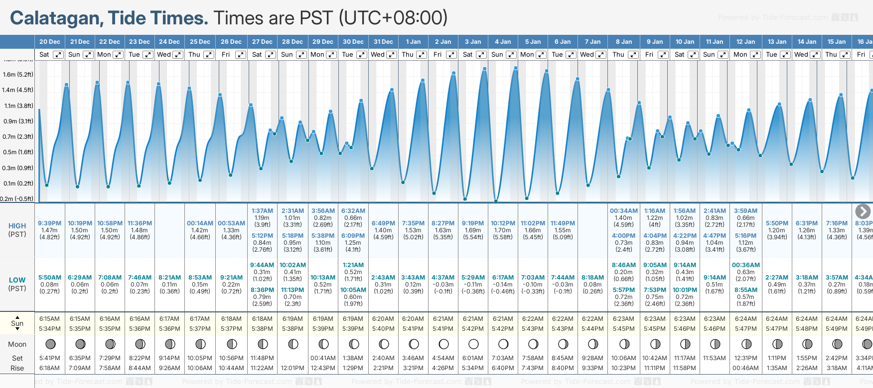 Today's tide times for Calatagan: Sunday 21 December 2025