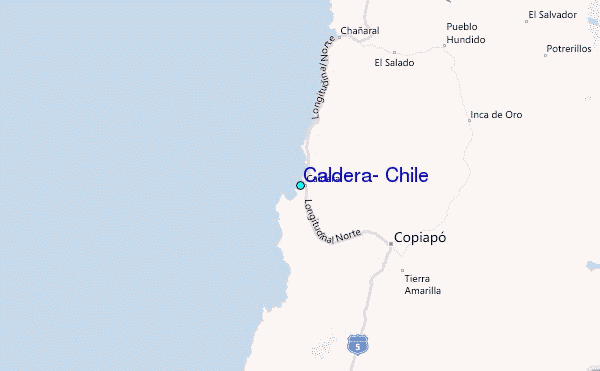 Use this relief map to navigate to tide stations, surf breaks and cities that are in the area of Caldera, Chile.