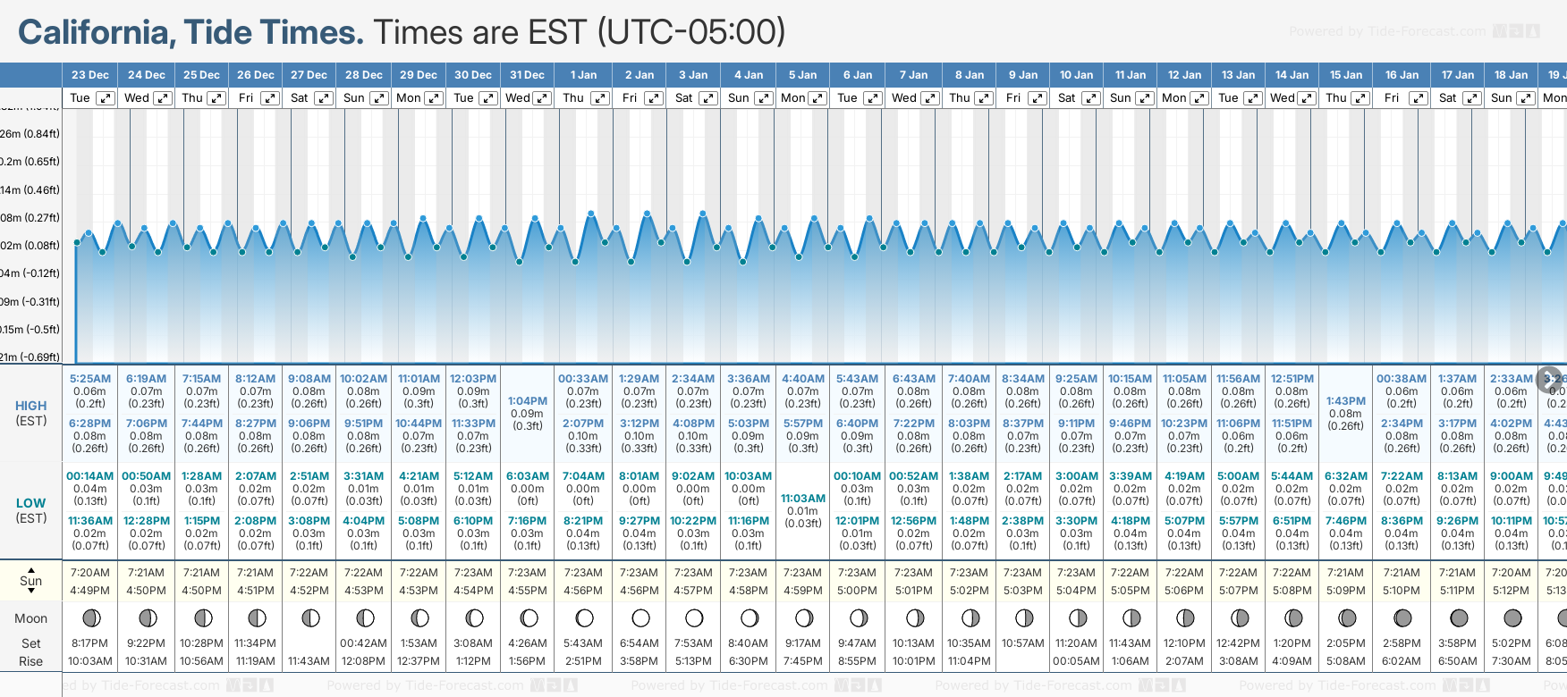 Tide Times for California (tomorrow): Thursday 25 December 2025