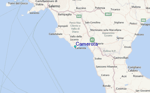 Use this relief map to navigate to tide stations, surf breaks and cities that are in the area of Camerota.