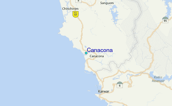 Other Nearby Locations' tide tables and tide charts to Canacona: